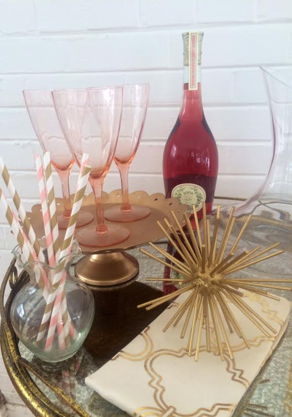 I styled it three different ways to really highlight its versatility, from a bar cart to a nightstand to an end table. Different household accessories can easily make this mirrored butler tray fit in anywhere – and in style. You just can’t go wrong with a gold mirrored tray, especially once its adorned with beautiful accessories, from rose gold glassware to fabric covered classic books to your favorite household items.