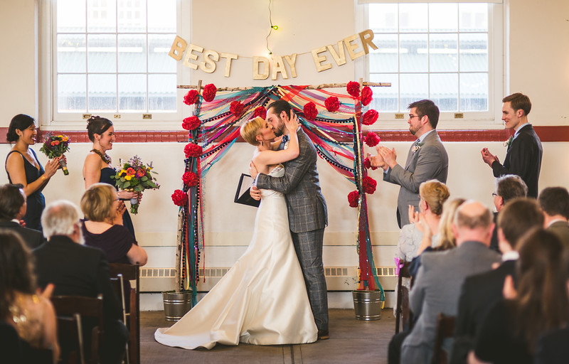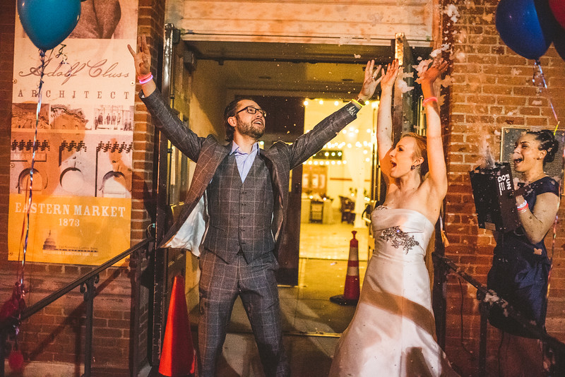 Some of my favorite moments and highlights of Alicia and Chris’ wedding day: the “best day ever” sign over the ceremony ribbon arch (made by Alicia herself!), finally utilizing Eastern Market for the ceremony and reception, the sunny, warm March weather, the intense + raw joy and emotion as Chris saw Alicia for the first time, the epic group selflie at the end of the ceremony, Chris ripping his pants as he high-kicked through the banner during their introduction as husband & wife, the brick oven pizzas + gelato cart onsite, all of the love their family and friends surrounded them with, cheering for UNC in the middle of March Madness, the pinata, and a pretty epic snow machine exit! As you can tell, this wedding was filled with so many personalized, meaningful, and just plain FUN touches. Alicia and Chris really celebrated their love and the family & friends who joined them on this day.