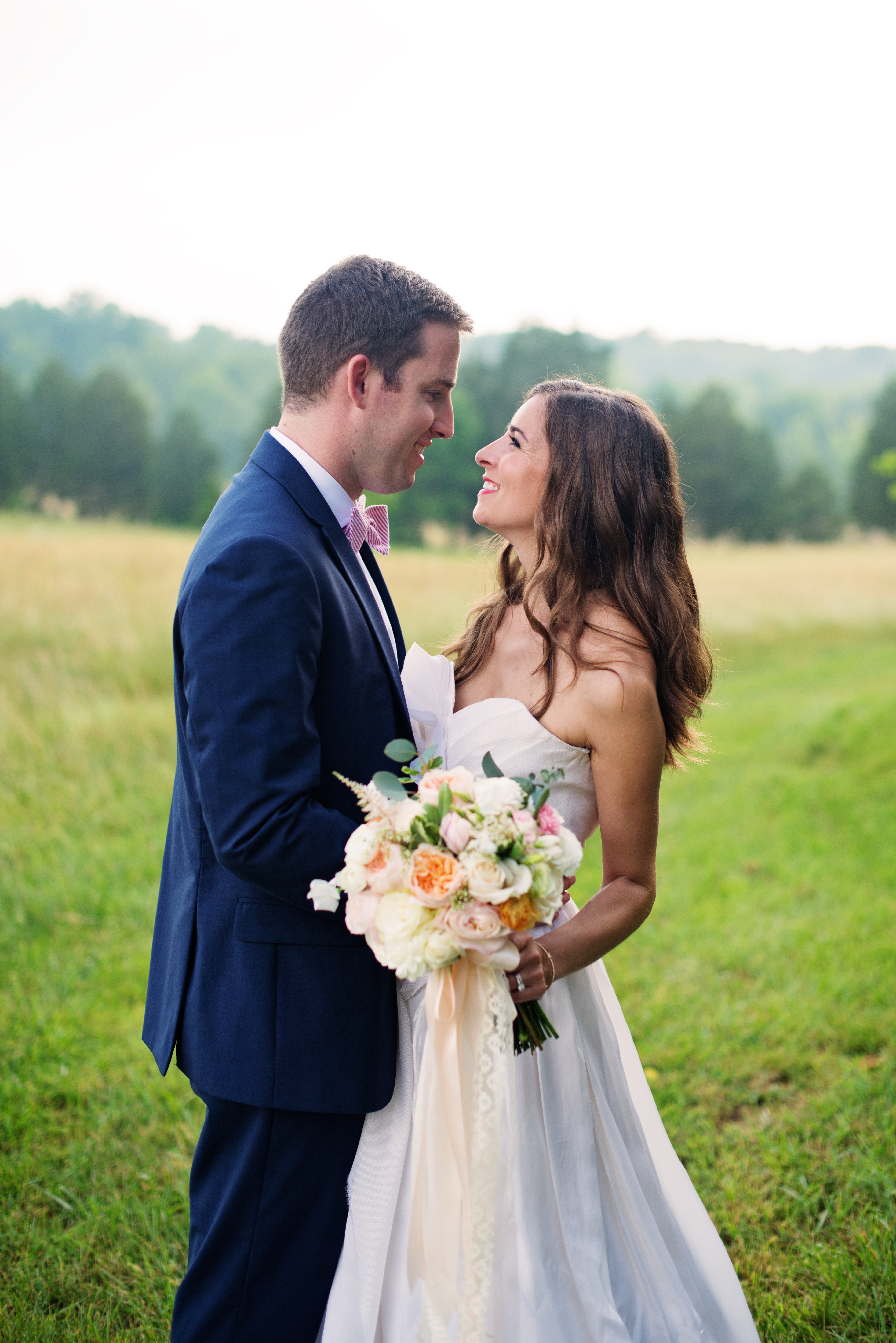 I am more than a little in love with this image!! I love all of the Southern elegance of this gorgeous and oh so in love couple. They exude love in every way! From the lush orchard to the sweet Southern bride and groom to the cheery, light and bright bouquet bursting with my favorite blooms, these two were the perfect match to make this shoot come to life.