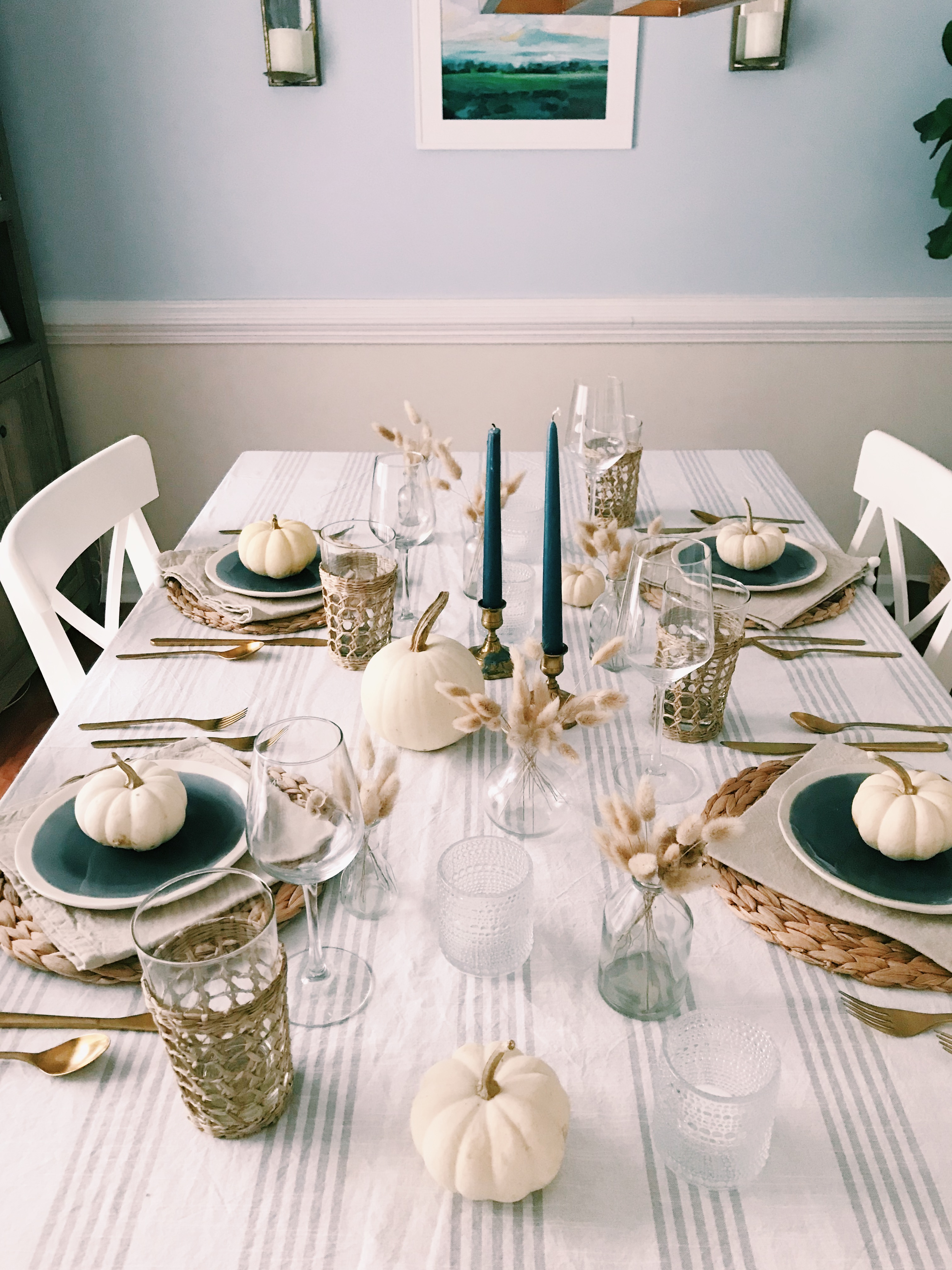 Blue and Wheat Autumn Tablescape