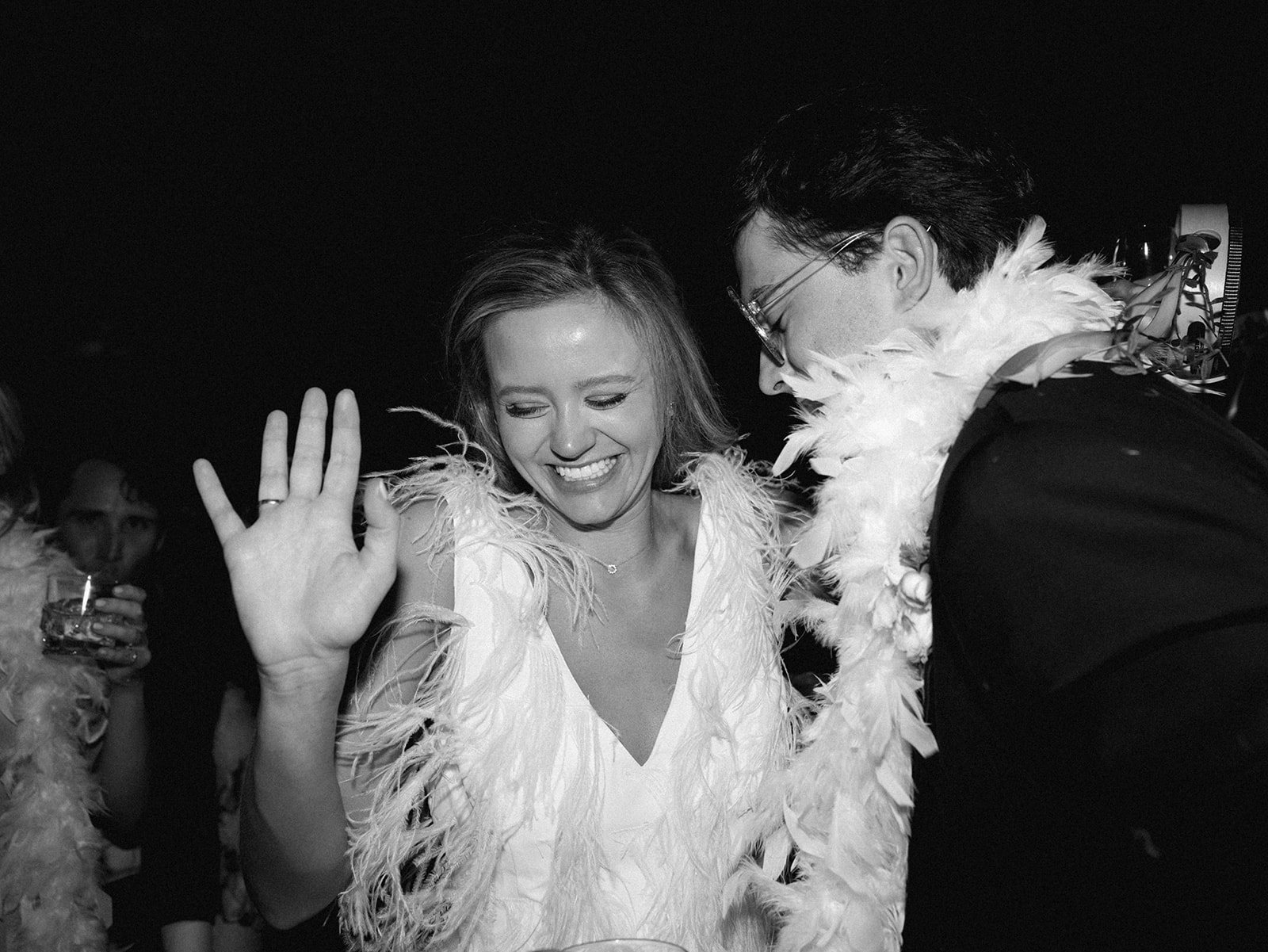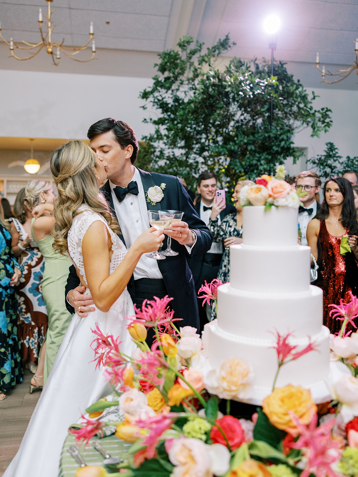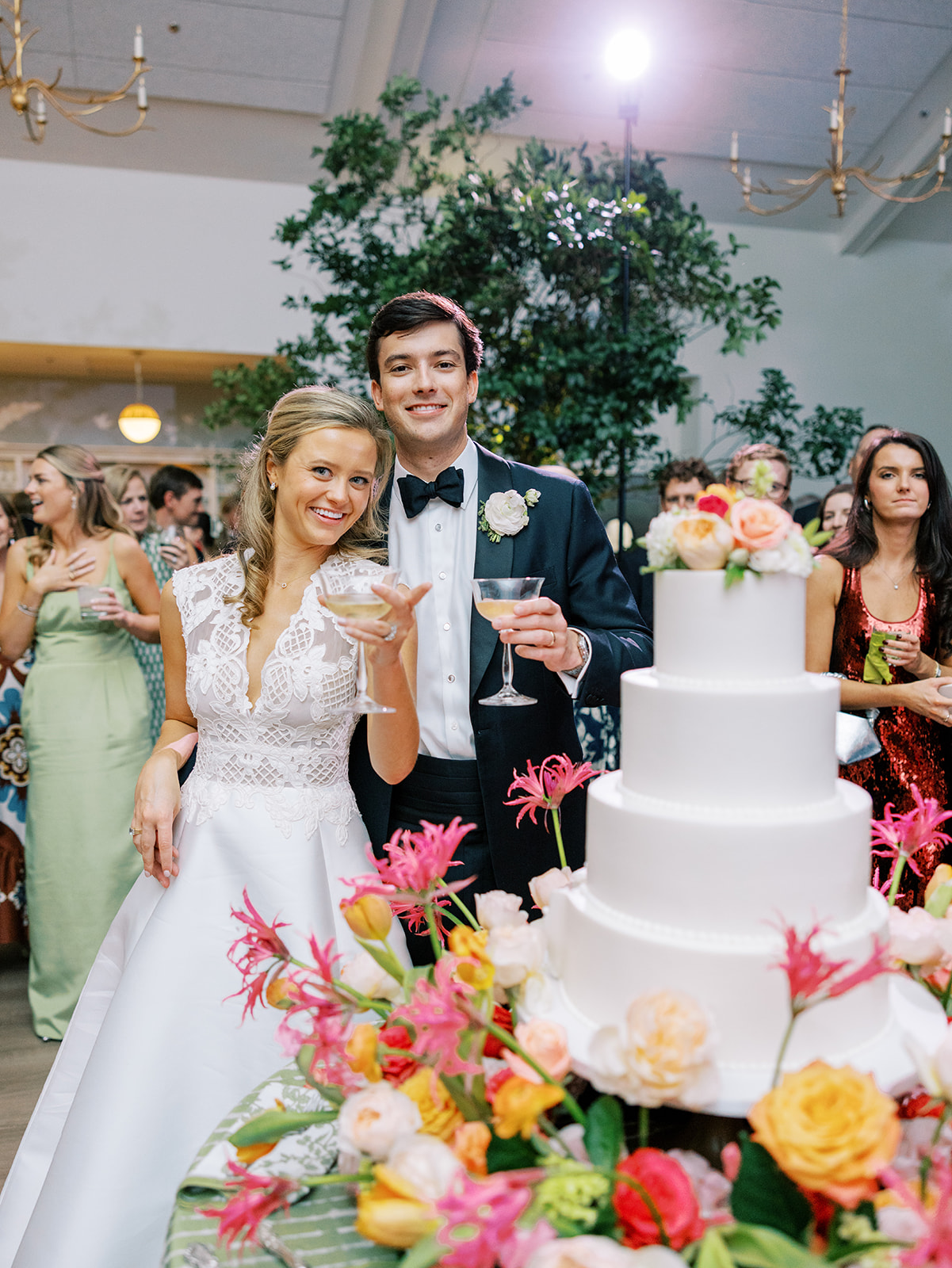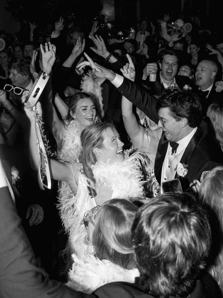 Shields and David’s reception was so darn fun and filled with so much celebration, laughter, fun, and sweet moments! Every bit of it was incredible, and you could tell at every turn just how beloved these two are – and how much their love their people, too. From the most deafening, excited reception entrance to the sweetest first dances to a delicious cake cutting and amazing stations to dancing all.night.long, it was pure magic!! I love seeing nearly 400 people having a blast and celebrating the bride and groom so well, and the dance floor stayed utterly packed for four straight hours. Later in the evening, espresso martini shooters were passed, along with late night snacks on the dance floor. And then it was time for a dress change, those infamous tambourines to come out, and feather boas and sunglasses to make their debut on the dance floor. What an epic evening of fun and celebration it was!