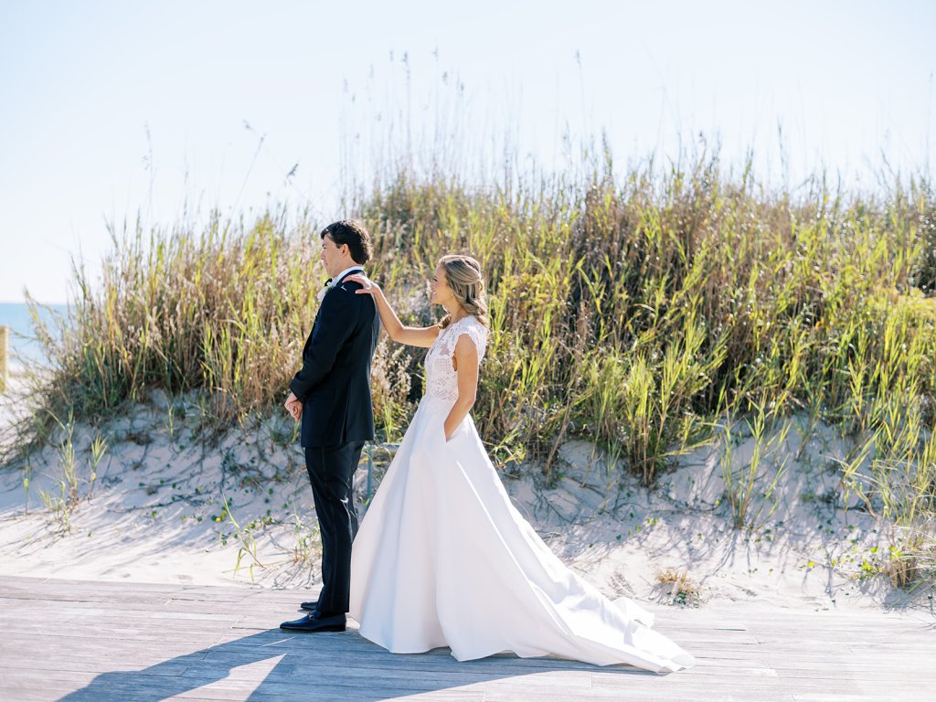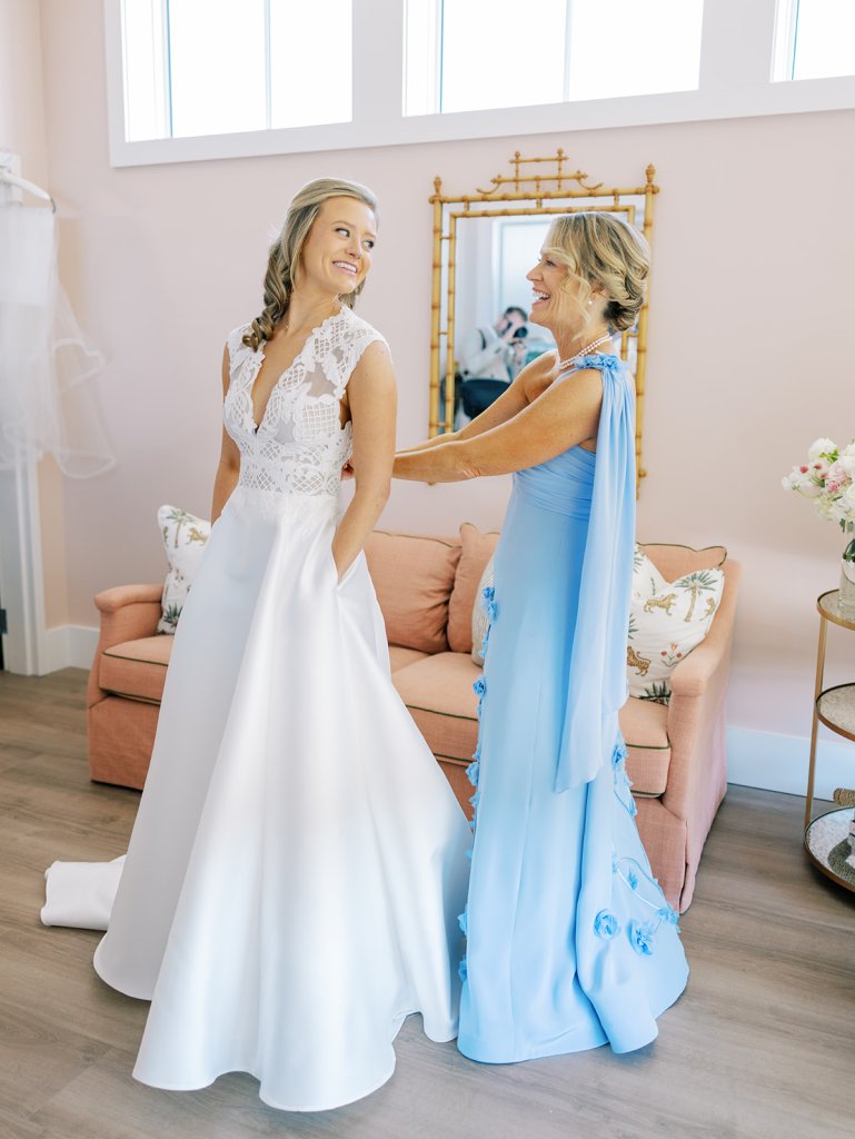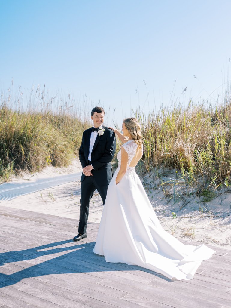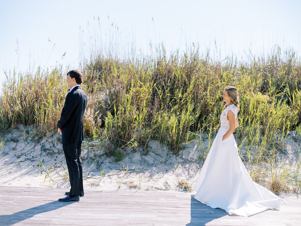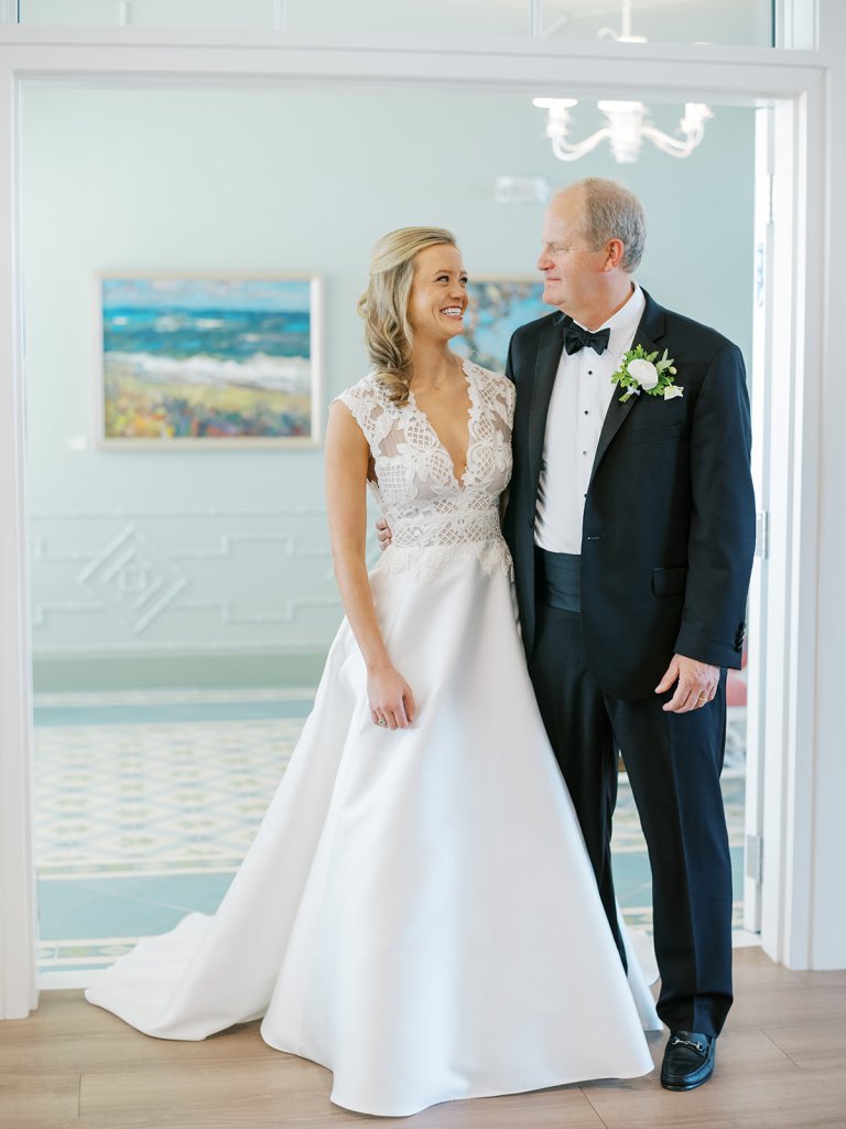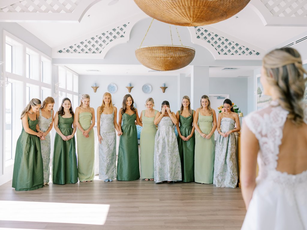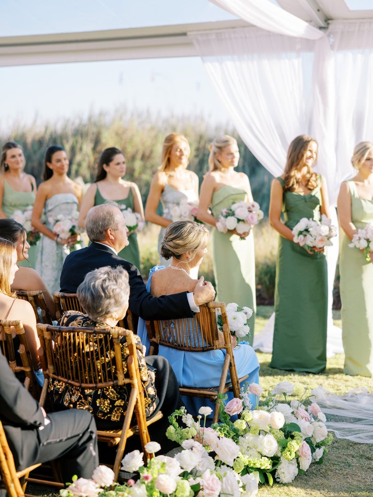 These getting ready moments are always filled with so much anticipation, excitement, and sweet moments, and I love that Shields and David brought together the longtime friends that mean so much to them! I love a large wedding party, and this crew was no exception – so many of the bridesmaids and groomsmen have known both Shields and David (and each other!) for a very long time, and you could tell how close they all were. And talk about one stunning and dapper wedding party!! This crew was so, so gracious, thoughtful, and fun, and you could tell just how much they all adore Shields and David. And I’ll never not tear up watching my brides put on their wedding gowns with their mothers or during an emotional father-daughter first look or with a wildly heartfelt first look between the bride and groom. Witnessing these long-anticipated moments up close is such a privilege and incredibly moving, and there wasn’t a dry eye as Shields and David saw each other for the first time on their wedding day! Will I ever be over the abundance of joy, love, happy tears, and celebrations from Shields & David’s wedding at the coast?! Shields, David, their families, and their wedding party are as beautiful and radiant inside as they are outside; don’t you think?! They are all simply incredible! Planning and designing alongside Shields and her amazing mother, Rebecca, for the last year has been such a special, rewarding, and fun experience, and I adore these two so much.
