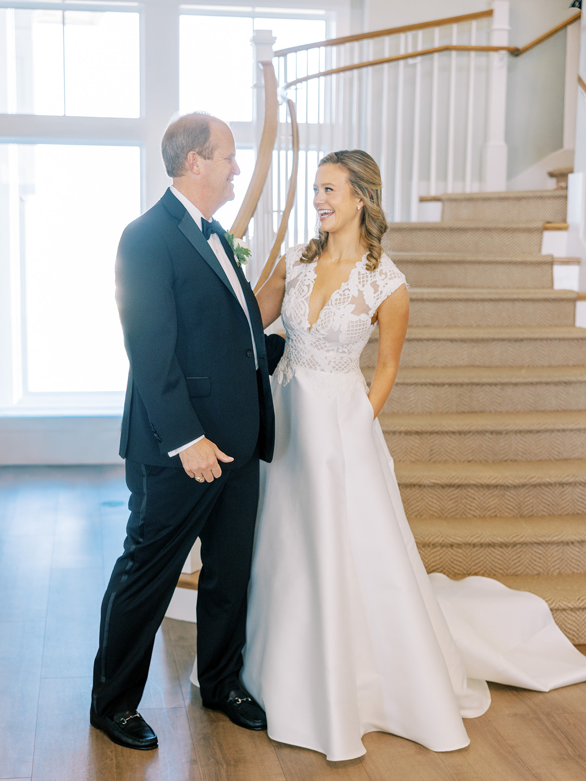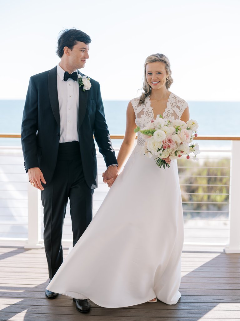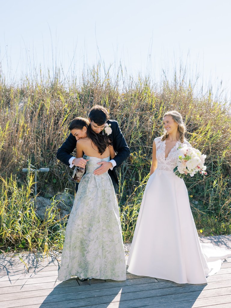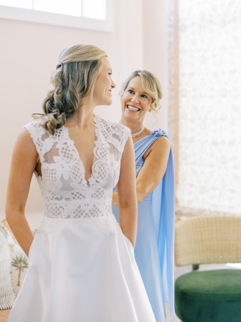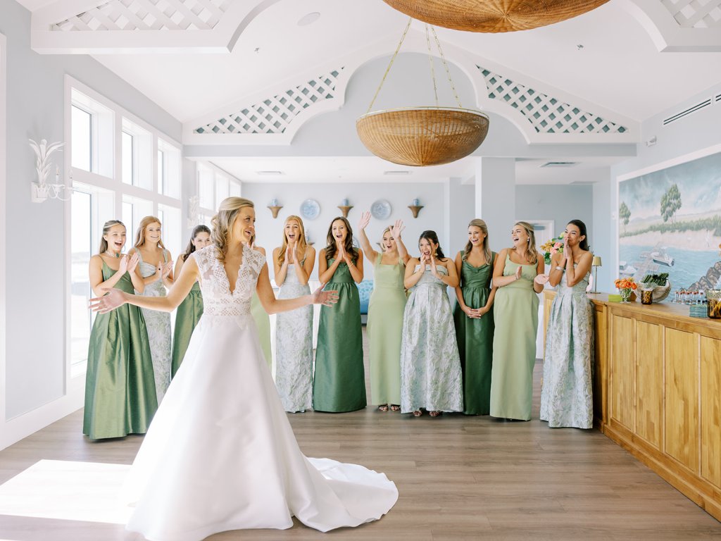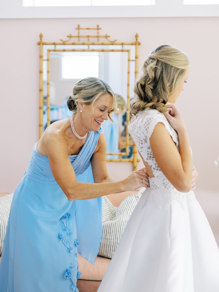 These getting ready moments are always filled with so much anticipation, excitement, and sweet moments, and I love that Shields and David brought together the longtime friends that mean so much to them! I love a large wedding party, and this crew was no exception – so many of the bridesmaids and groomsmen have known both Shields and David (and each other!) for a very long time, and you could tell how close they all were. And talk about one stunning and dapper wedding party!! This crew was so, so gracious, thoughtful, and fun, and you could tell just how much they all adore Shields and David. And I’ll never not tear up watching my brides put on their wedding gowns with their mothers or during an emotional father-daughter first look or with a wildly heartfelt first look between the bride and groom. Witnessing these long-anticipated moments up close is such a privilege and incredibly moving, and there wasn’t a dry eye as Shields and David saw each other for the first time on their wedding day! Will I ever be over the abundance of joy, love, happy tears, and celebrations from Shields & David’s wedding at the coast?! Shields, David, their families, and their wedding party are as beautiful and radiant inside as they are outside; don’t you think?! They are all simply incredible! Planning and designing alongside Shields and her amazing mother, Rebecca, for the last year has been such a special, rewarding, and fun experience, and I adore these two so much.