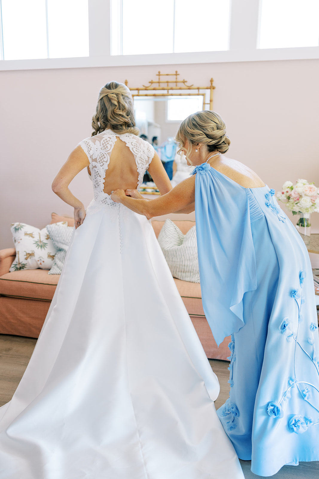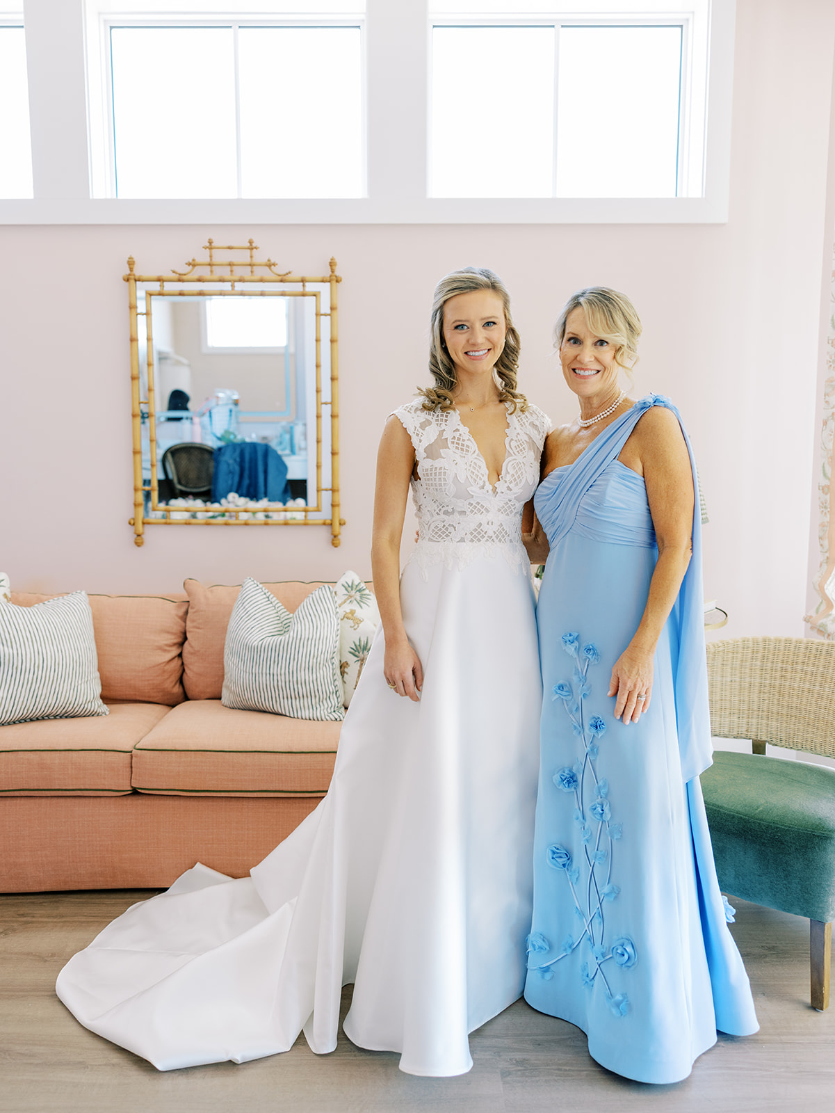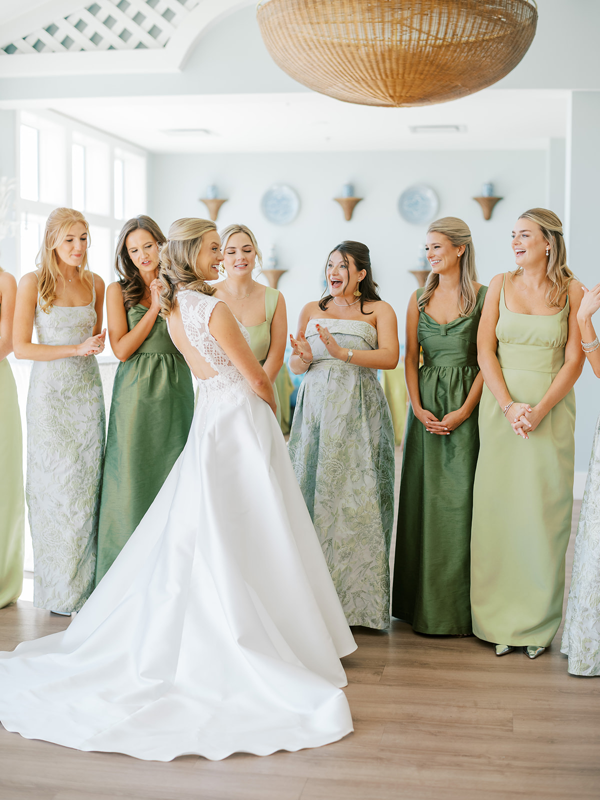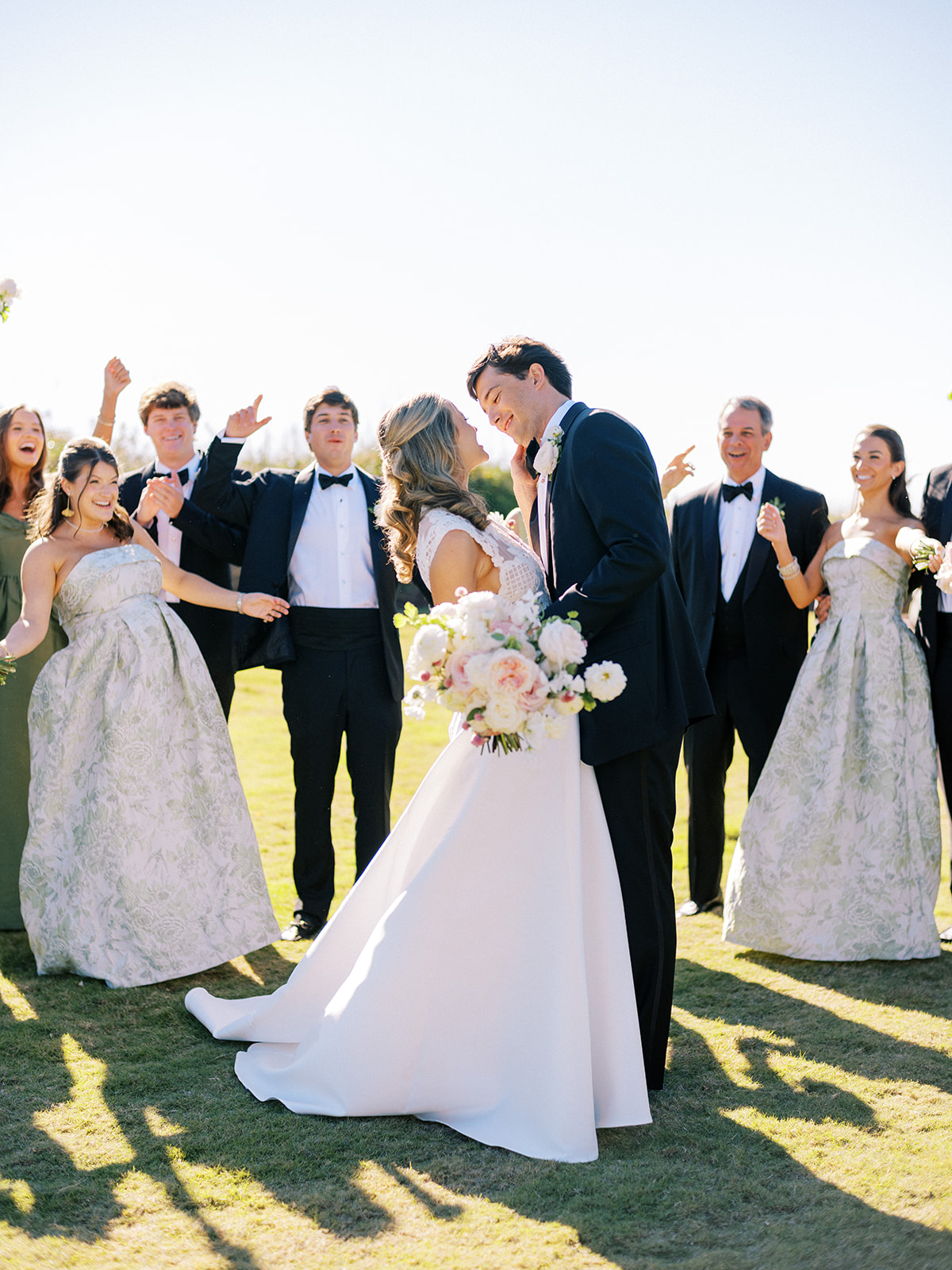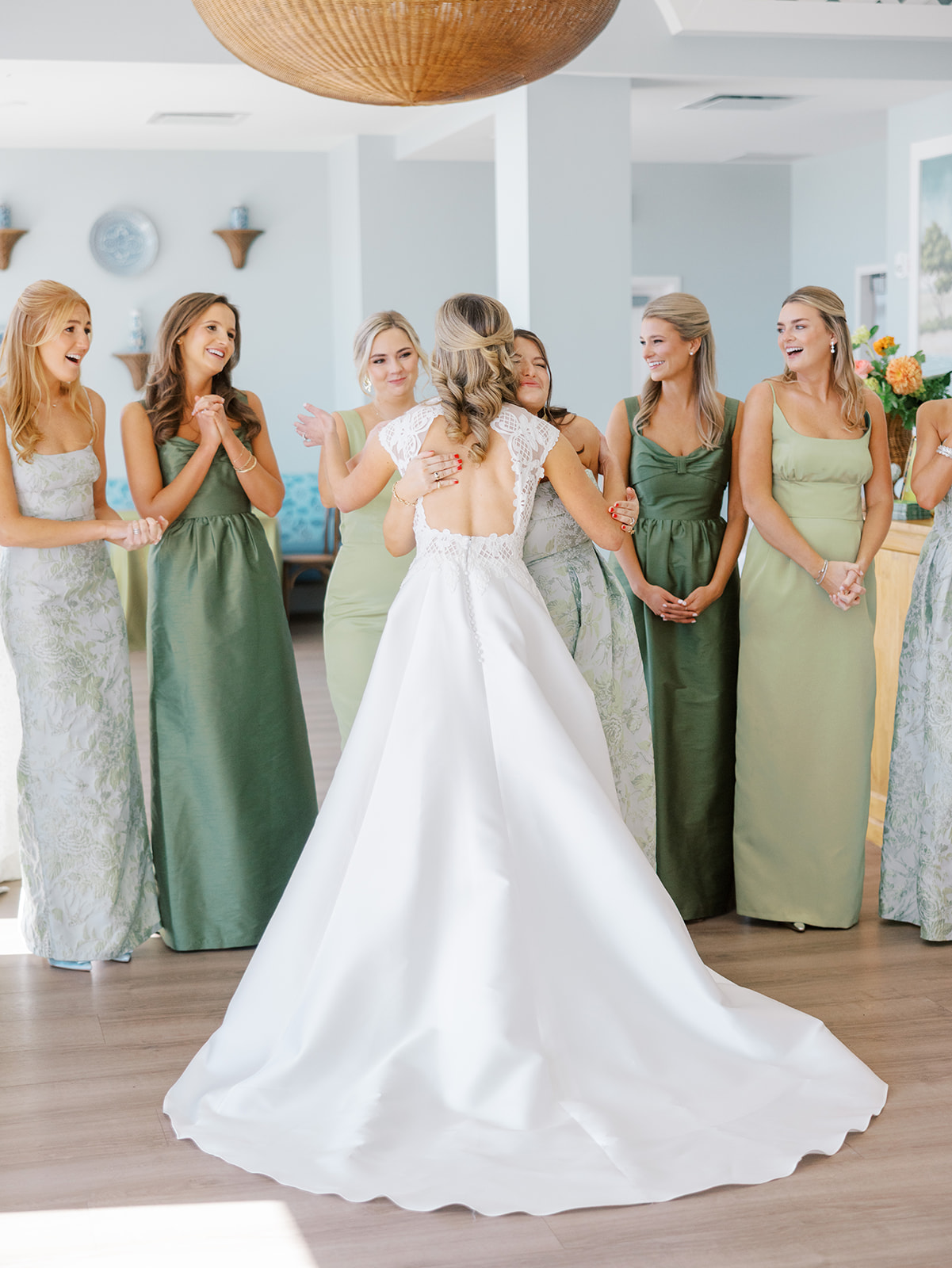 These getting ready moments are always filled with so much anticipation, excitement, and sweet moments, and I love that Shields and David brought together the longtime friends that mean so much to them! I love a large wedding party, and this crew was no exception – so many of the bridesmaids and groomsmen have known both Shields and David (and each other!) for a very long time, and you could tell how close they all were. And talk about one stunning and dapper wedding party!! This crew was so, so gracious, thoughtful, and fun, and you could tell just how much they all adore Shields and David. And I’ll never not tear up watching my brides put on their wedding gowns with their mothers or during an emotional father-daughter first look or with a wildly heartfelt first look between the bride and groom. Witnessing these long-anticipated moments up close is such a privilege and incredibly moving, and there wasn’t a dry eye as Shields and David saw each other for the first time on their wedding day! Will I ever be over the abundance of joy, love, happy tears, and celebrations from Shields & David’s wedding at the coast?! Shields, David, their families, and their wedding party are as beautiful and radiant inside as they are outside; don’t you think?! They are all simply incredible! Planning and designing alongside Shields and her amazing mother, Rebecca, for the last year has been such a special, rewarding, and fun experience, and I adore these two so much.