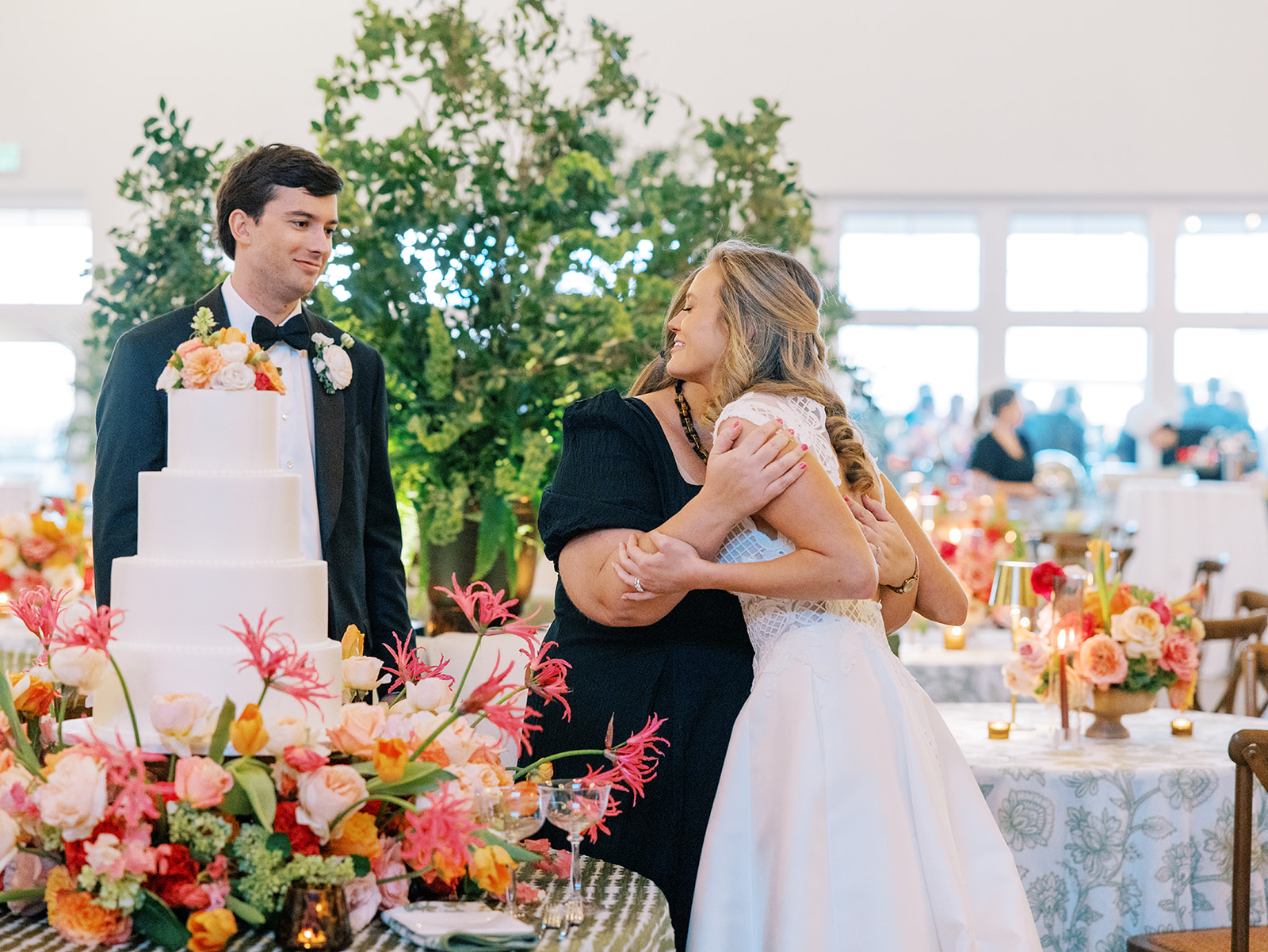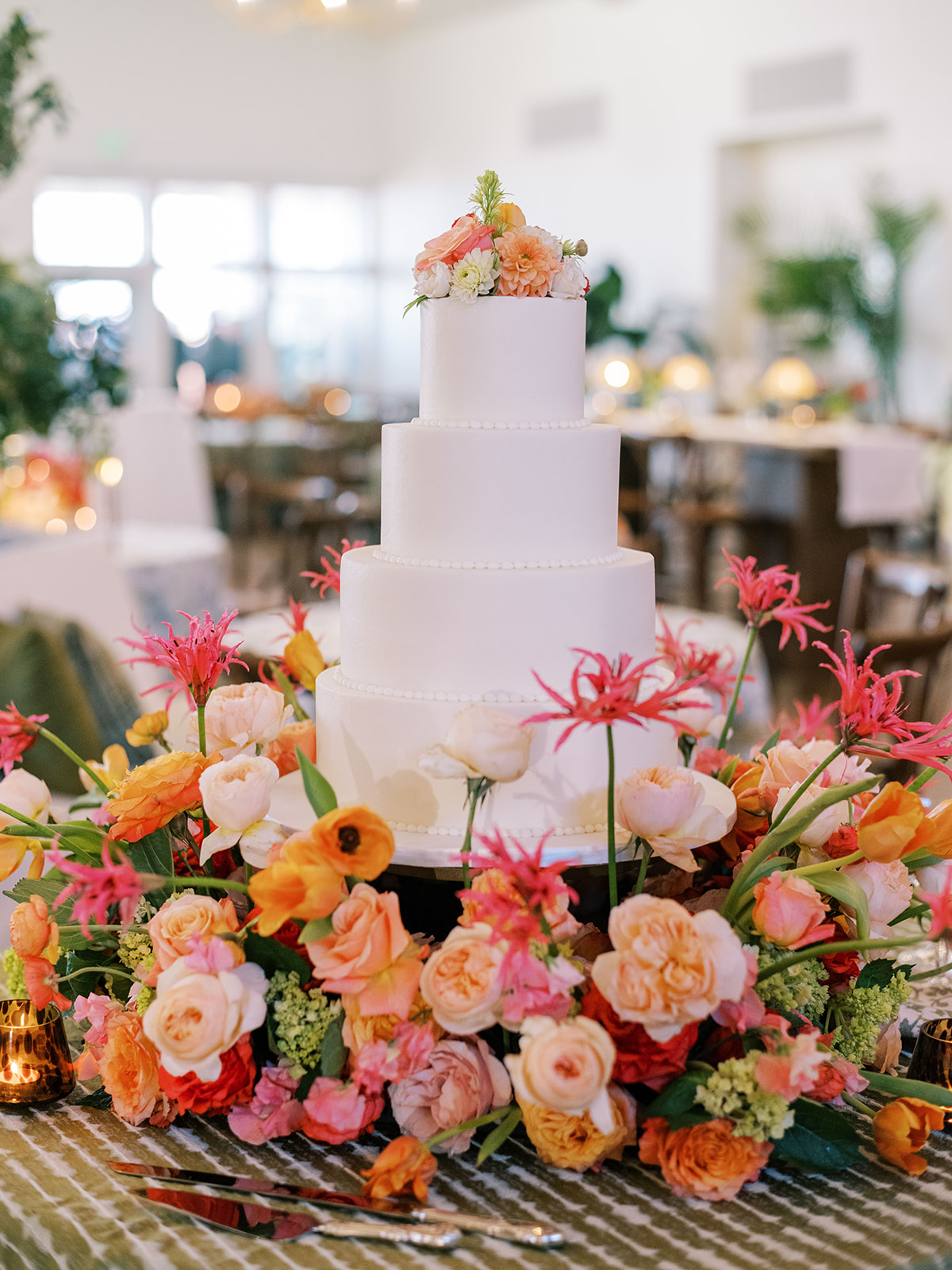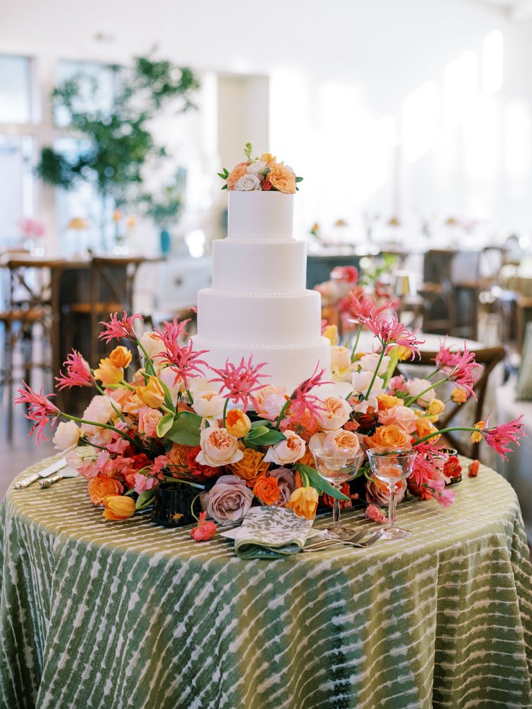 And the flowers! We opted to keep the personal flowers (like the bouquets) and the ceremony flowers in a softer, more classic, very romantic palette of whites, creams, and soft pink with ample greenery to let the other design elements shine and the focus of the ceremony be on their marriage. We then kicked it up a notch for Shields and David’s cocktail hour and reception, injecting a punchy, bold palette of hot pinks, oranges, and chartreuse into all of the flowers and the design elements there. I loved how the ceremony design slightly contrasted from their cocktail hour and reception while still being such a seamless, cohesive transition.