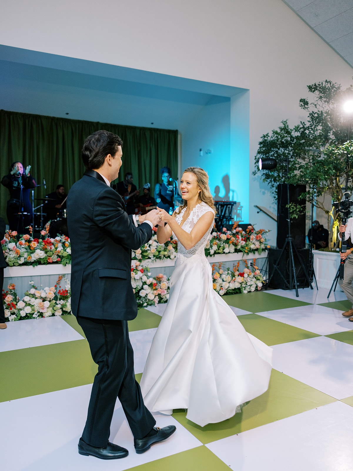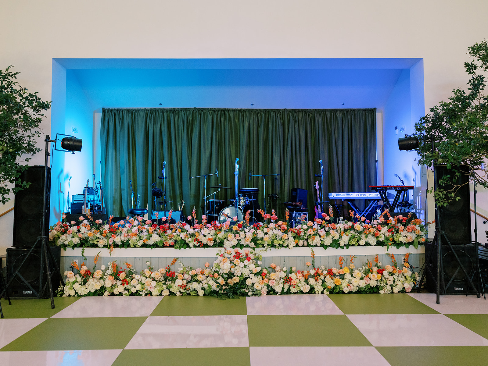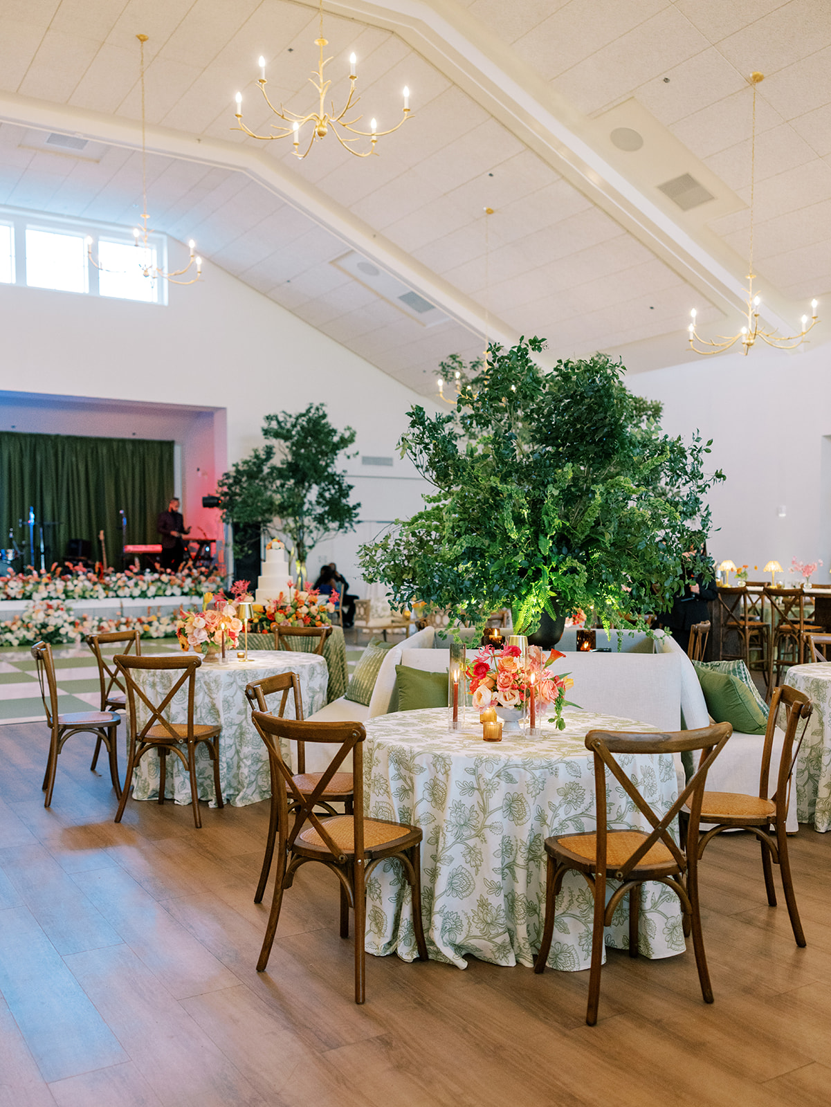 I absolutely loved the design and every single detail, from the incredibly symmetrical layout (in every direction!), the perfectly placed banquettes and towering greenery urns, the high-impact “dance floor moment” with a checkered dance floor, flowers along the entire top and bottom of the stage, olive draping behind the band, and the potted trees in each corner, and so much more. I spent a year perfecting every single detail, big and small, and I can only hope that Shields, David, and their loved ones felt like it was the perfect representation of the two of them, their vision for their wedding, and the most beautiful setting for their festivities to unfold. I am deeply, deeply grateful for a true dream team of vendors and partners who collaborated so well, were so hard-working, dedicated, and servant-hearted, and who are utterly phenomenal and talented at what they do. None of this would have been possible without this incredible team of vendors, my amazing week-of assistants, and a couple and families who trusted us wholeheartedly.