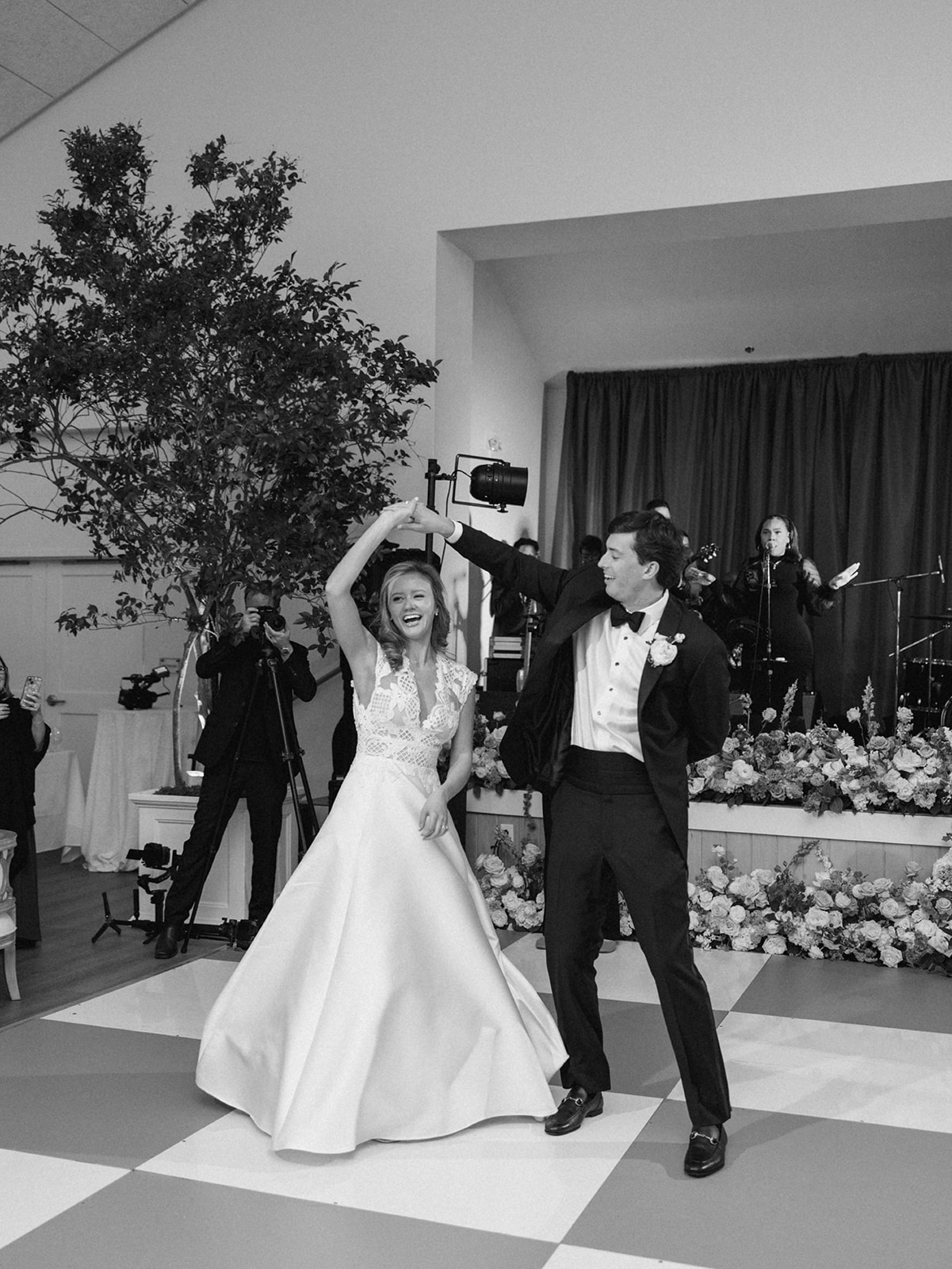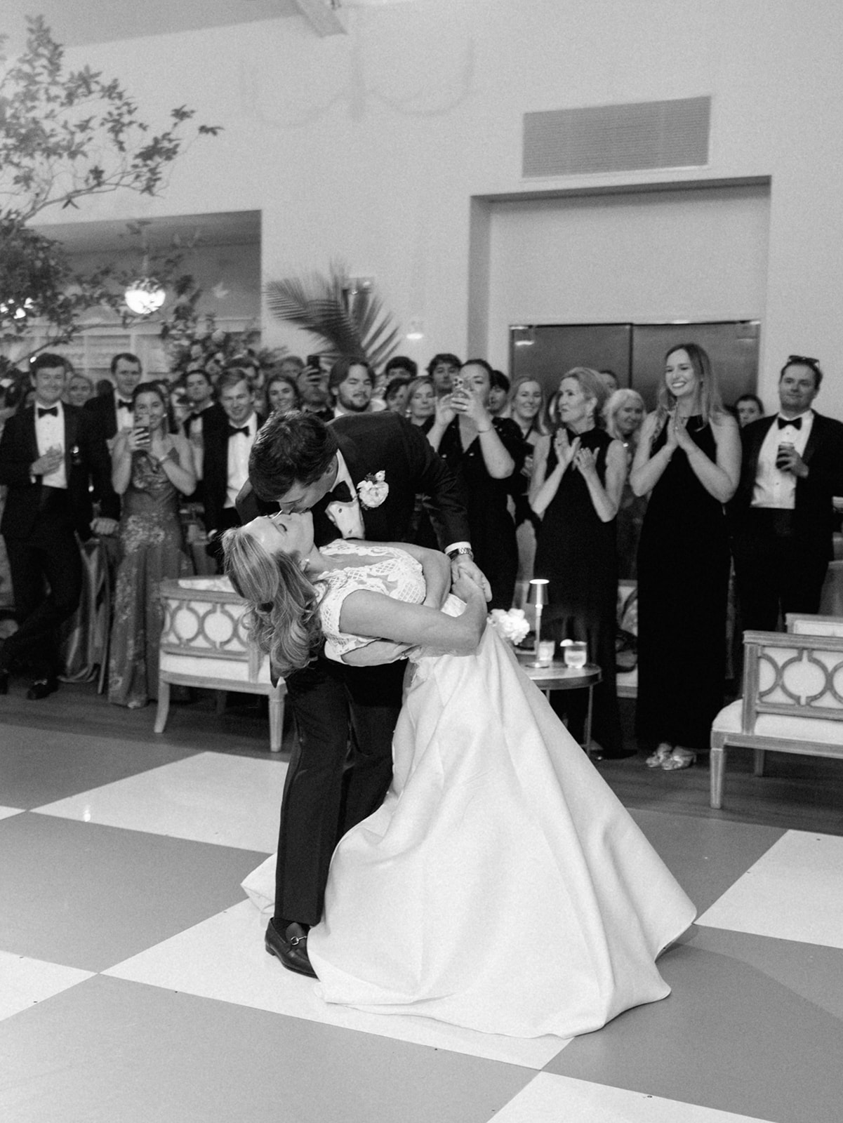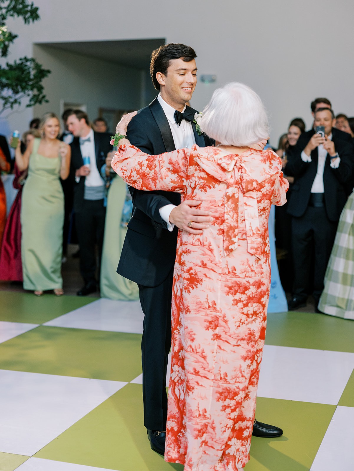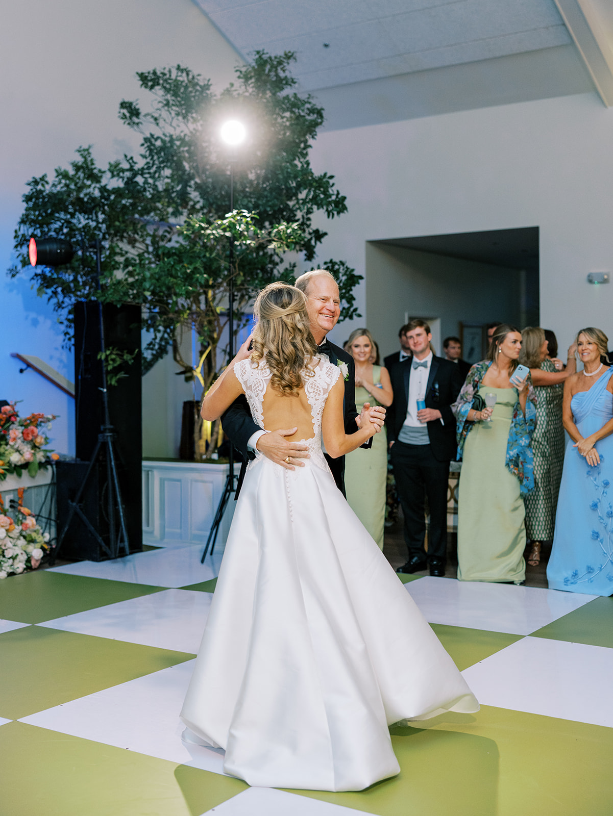 I absolutely loved the design and every single detail, from the incredibly symmetrical layout (in every direction!), the perfectly placed banquettes and towering greenery urns, the high-impact “dance floor moment” with a checkered dance floor, flowers along the entire top and bottom of the stage, olive draping behind the band, and the potted trees in each corner, and so much more. I spent a year perfecting every single detail, big and small, and I can only hope that Shields, David, and their loved ones felt like it was the perfect representation of the two of them, their vision for their wedding, and the most beautiful setting for their festivities to unfold. I am deeply, deeply grateful for a true dream team of vendors and partners who collaborated so well, were so hard-working, dedicated, and servant-hearted, and who are utterly phenomenal and talented at what they do. None of this would have been possible without this incredible team of vendors, my amazing week-of assistants, and a couple and families who trusted us wholeheartedly.