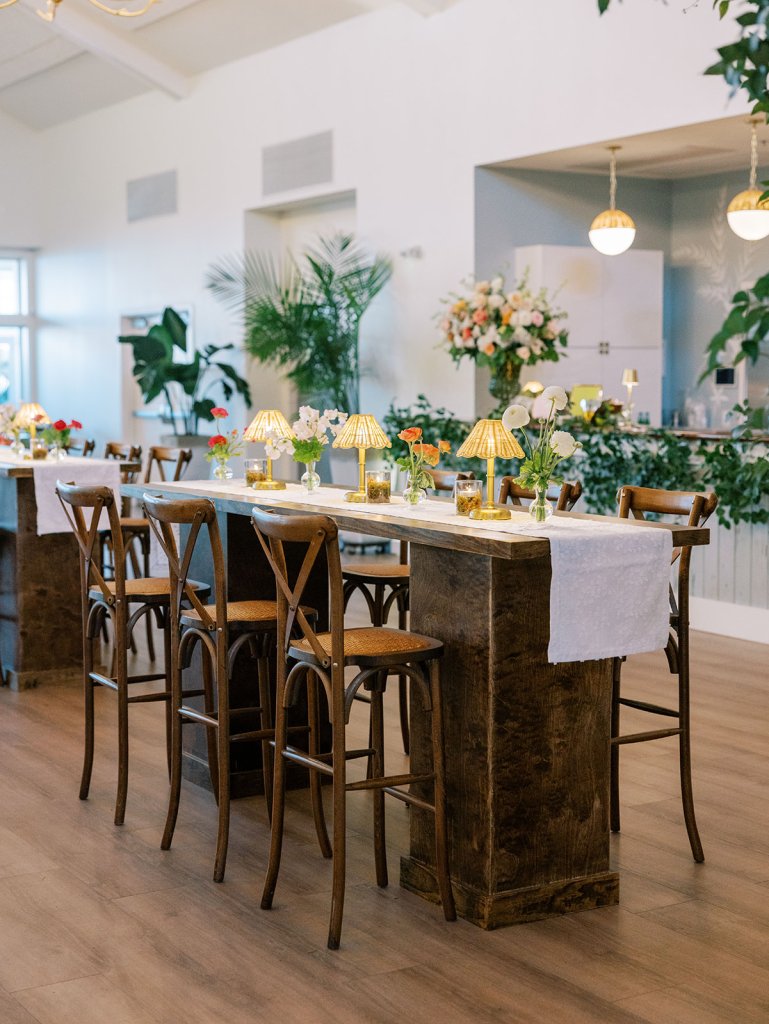 We designed banquette seating in the Ocean Room, ample cocktail tables throughout all of the spaces, lounge seating on the terrace and the lawn for guest comfort (and to linger long after the sun went down), and plenty of tables with seats on the lawn to draw the guests back outside once the stationed reception began, especially with such a high guest count! I love how we were really able to utilize and maximize the various spaces at Coral Bay Club and ensure the day’s flow was seamless.